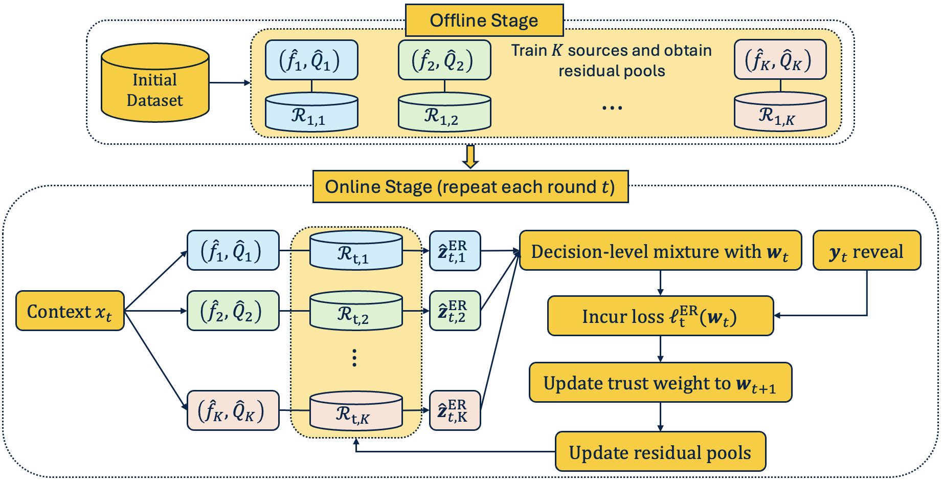 A decision-level ensemble framework built on empirical-residuals-based sample average approximation (ER-SAA) for multi-source contextual stochastic optimization