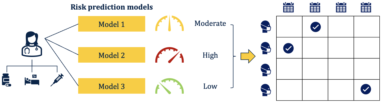 A dynamic preventive-care allocation framework that combines multiple predictive sources, corrects their biases, updates their reliability over time, and makes robust intervention decisions under uncertainty